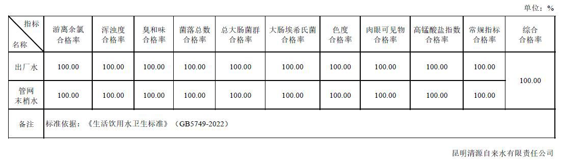 2025年9月昆明清源自来水有限责任公司供水水质公告