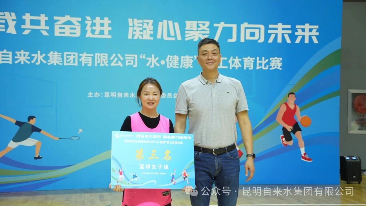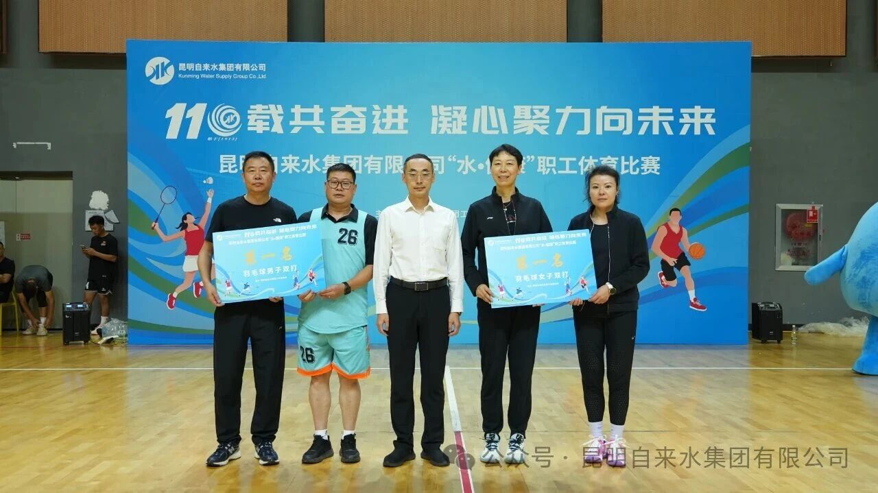 颁奖仪式上,昆水集团领导班子成员依次为在篮球和羽毛球比赛中取得优异成绩的获奖队伍及运动员颁发奖牌,现场掌声雷动。