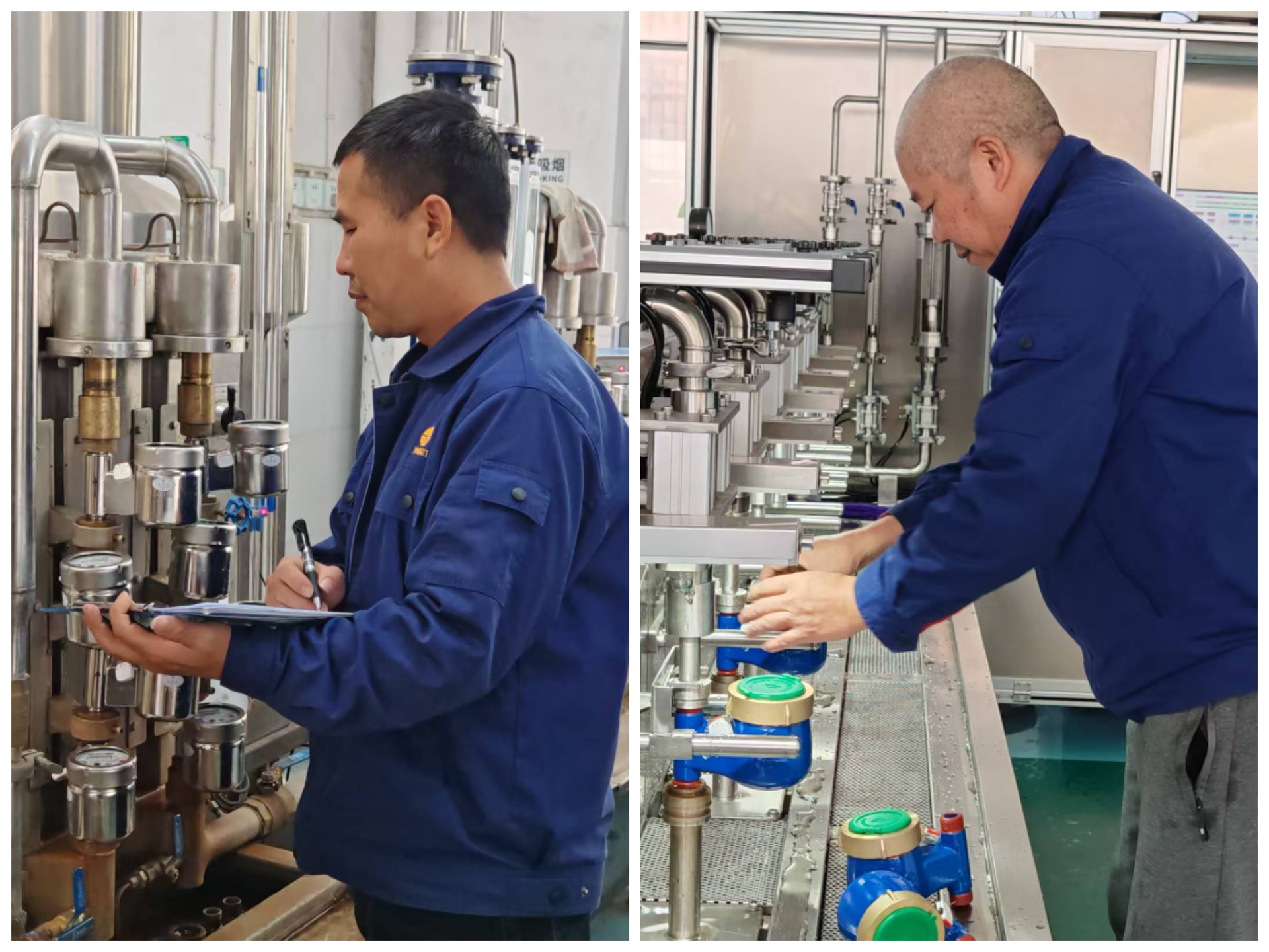 作为周期性换表的前置关口,昆明水务集团下属水工集团供水设备车间作为云南省计量测试技术研究院授权的水表计量第一检测中心,承担了本期25万只周期更换水表和6万余只新装水表的检测任务。在129天的水表检测攻坚期里,水表检定员实行“7x16小时两班倒”工作模式,严谨细致地完成每一只水表的流量检测和数据记录。车间还通过对检测试验室进行升级改造,将日检测能力从原来的1000只提升至2500只,实现了“效率与质量双提升”。