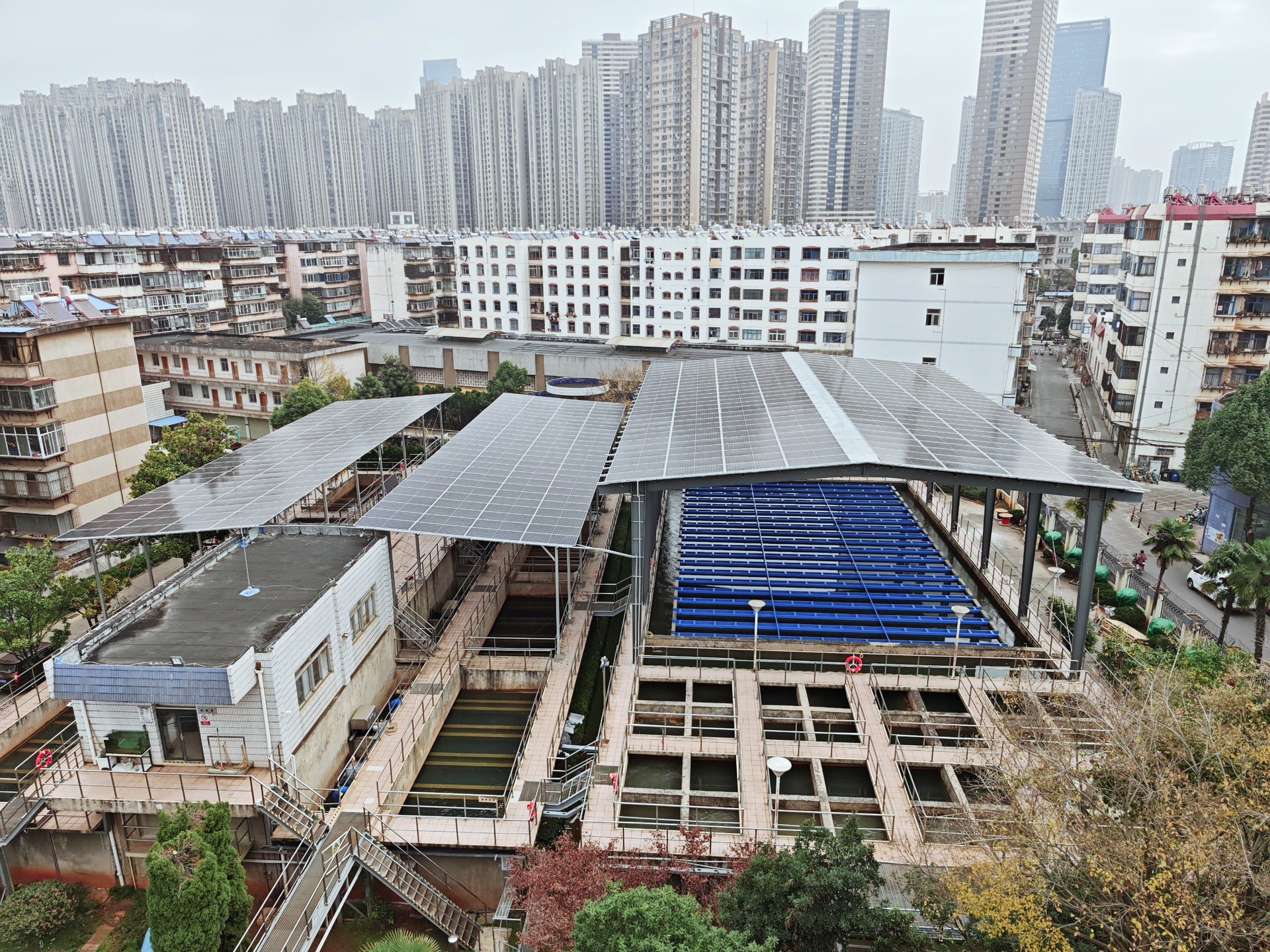 作为“光伏+水务”融合发展的生动实践,昆明水务集团在辖内10个自来水厂有序开展分布式光伏项目建设。目前,已有4个水厂进入施工阶段,其余水厂正在按计划推进前期筹备工作。水厂分布式光伏项目充分利用厂区内现有的沉淀池、滤池上空以及办公楼闲置屋顶空间搭建光伏组件,实现了空间资源的高效集约利用。项目建成并网后,各水厂将实现自主发电补充生产用电,在大幅降低生产用电成本的同时,有效减少碳排放,持续发挥生态效益,以新质生产力赋能集团绿色低碳高质量发展转型。