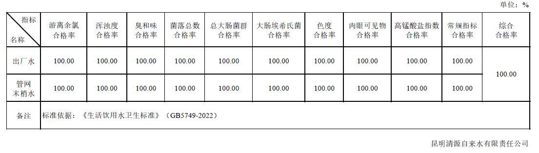 2025年11月昆明清源自来水有限责任公司供水水质公告