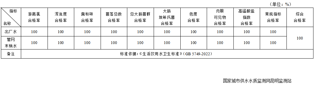 2025年10月昆明通用水务自来水有限公司水质公告